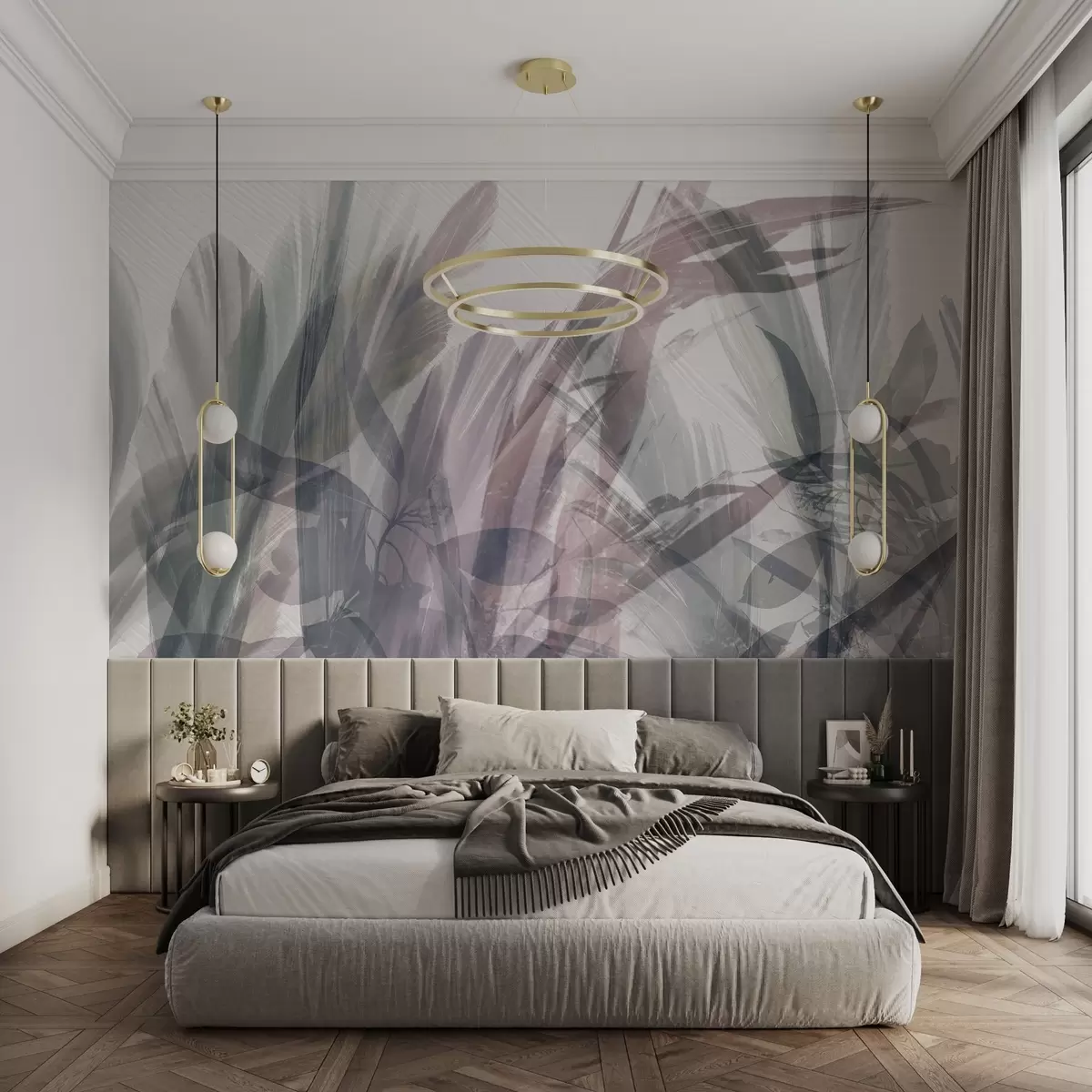 Stenske poslikave Mehko listje v nežnih odtenkih Št. w00798v1