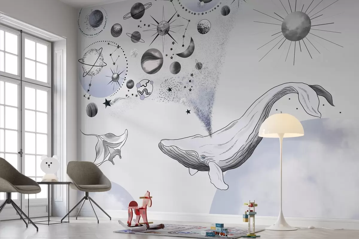 Stenske poslikave Kit se vzpenja med kozmičnimi čudesi Št. w00868