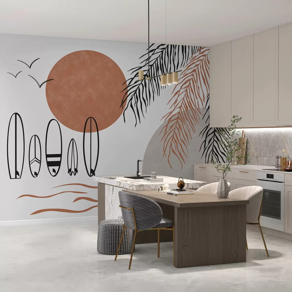 Stenske poslikave Deskarske deske, črtna risba palmovih vej, črna in rdeča barva Št. w00958