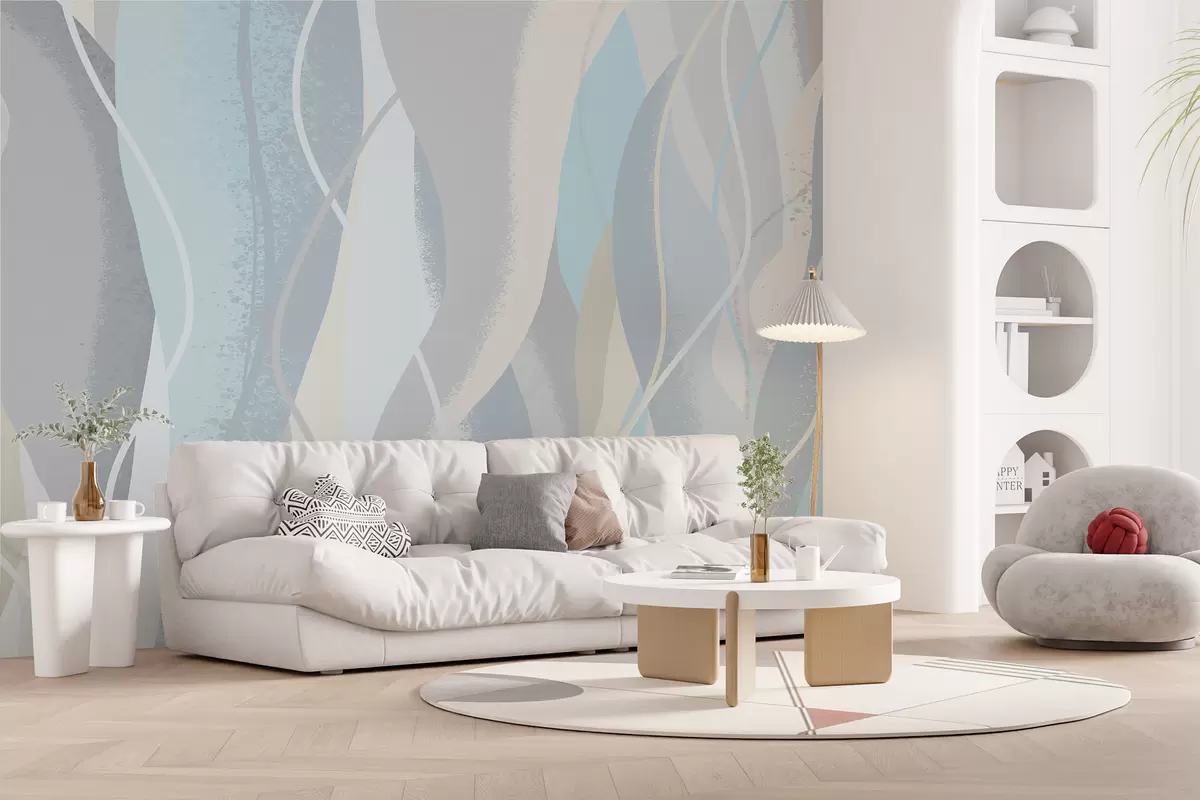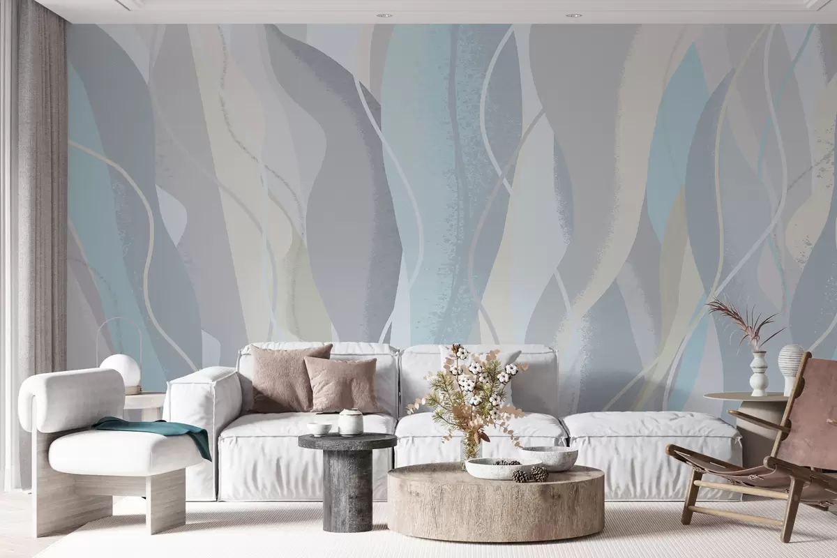 Stenske poslikave Sodobna abstraktna tapeta v ekološkem slogu v hladnih in toplih barvah Št. w01124