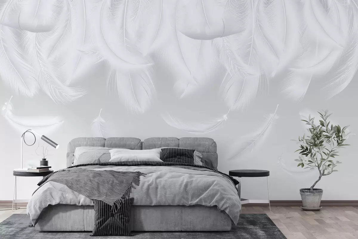 Stenske poslikave Nežno belo perje, ki pada od zgoraj na toplo sivo ozadje Št. w01150