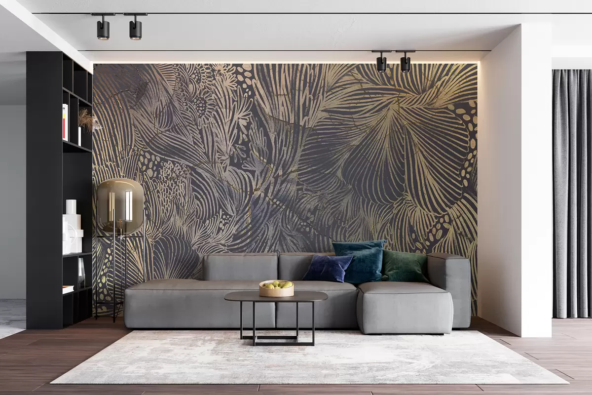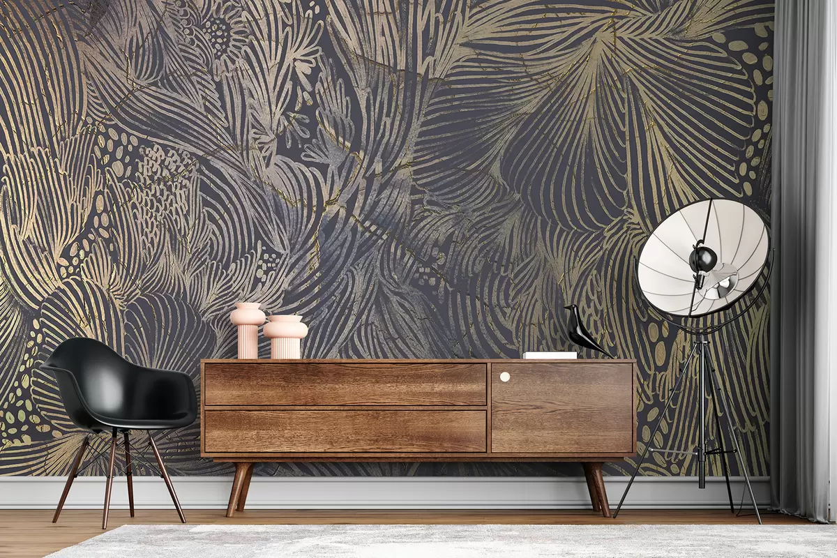 Stenske poslikave Abstraktni teksturirani luksuzni tisk s prekrivajočimi se organskimi oblikami in linijami Št. w01243