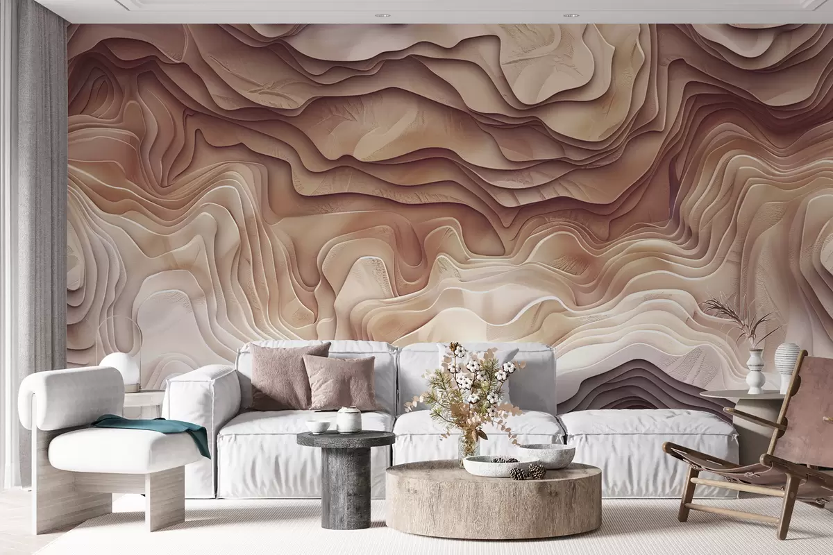 Stenske poslikave 3D topografski zemljevid z reliefnimi obrisi v svetlo rožnatih tonih Št. w01337