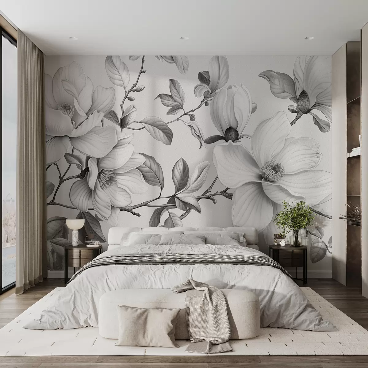 Stenske poslikave Enobarvna eleganca magnolije Št. w01429