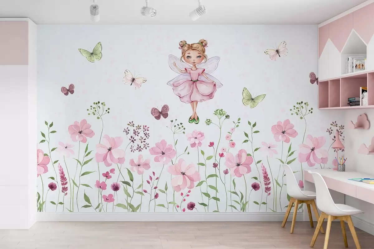 Stenske poslikave Vila med cvetjem in metulji Št. w01460