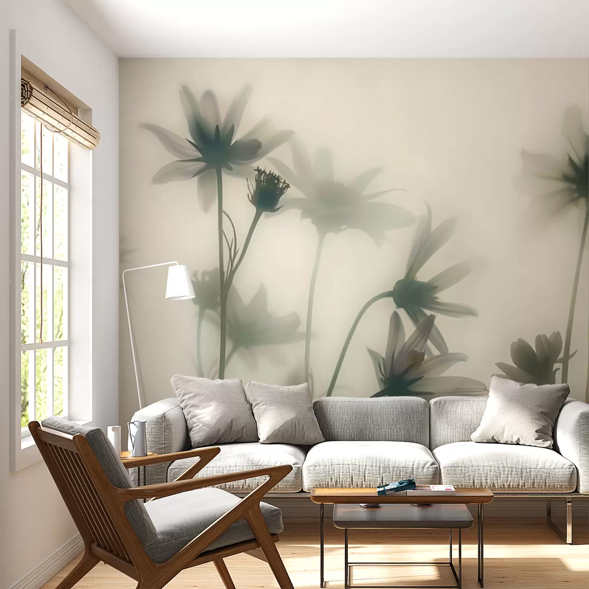 Stenske poslikave Nežni cvetovi v megli v modrih barvah Št. w01468v1