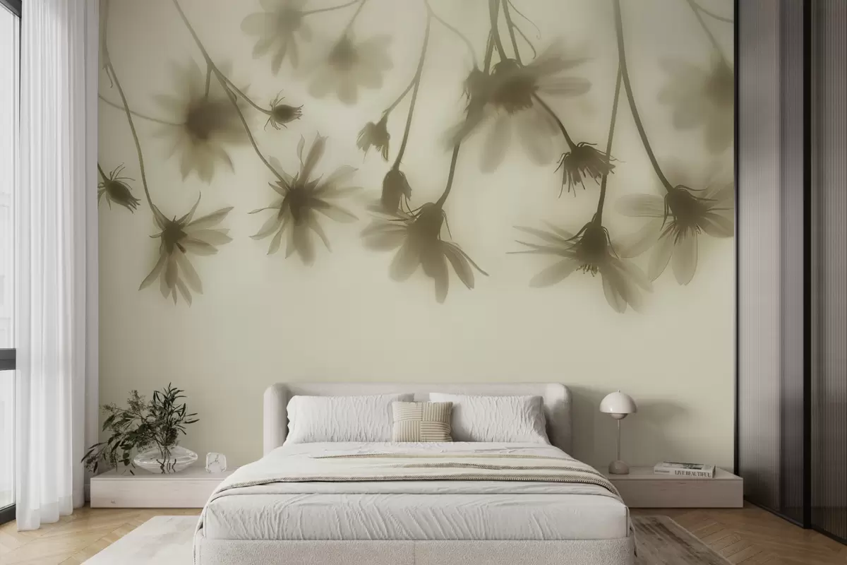 Stenske poslikave Nežni cvetovi v megli, ki visijo od zgoraj v pastelnih barvah Št. w01469v1