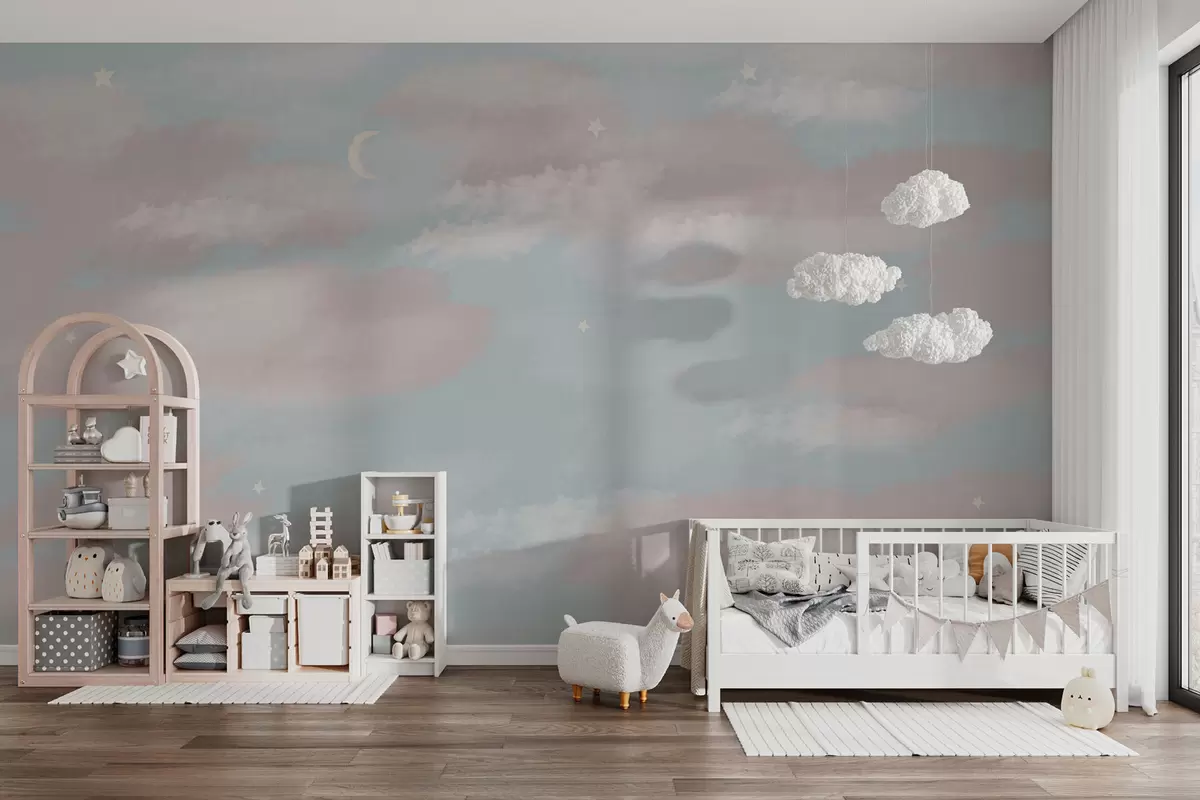 Stenske poslikave Čarobno nebo z oblaki, luno in zvezdami Št. w01549