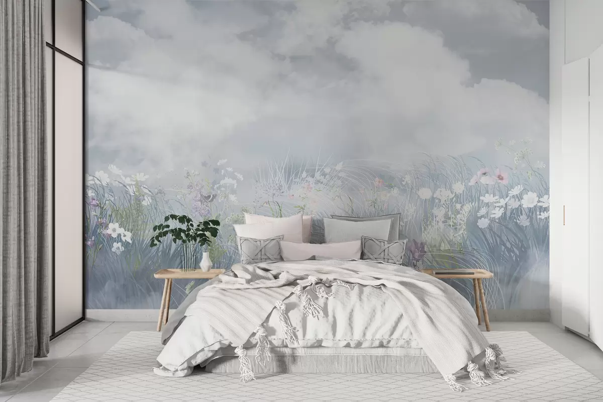 Stenske poslikave Divje cvetlice in trave z balkanskim nebom in oblaki Št. w01624