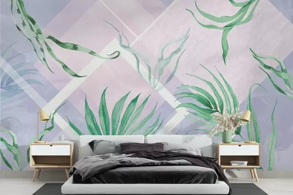 Stenske poslikave Bujna zelenjava na mehkem pastelno obarvanem ozadju Št. w01625
