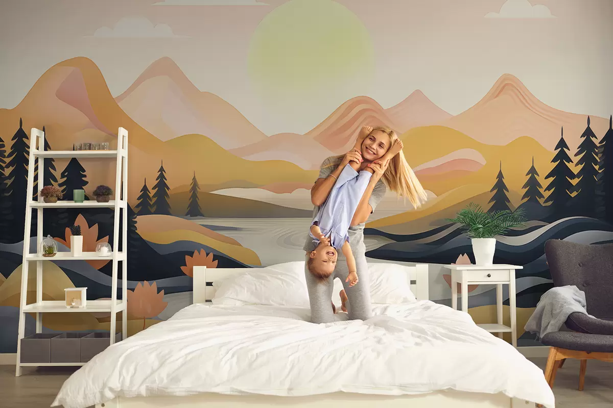 Stenske poslikave zarja svežega jesenskega jutra v gorah Št. w01657