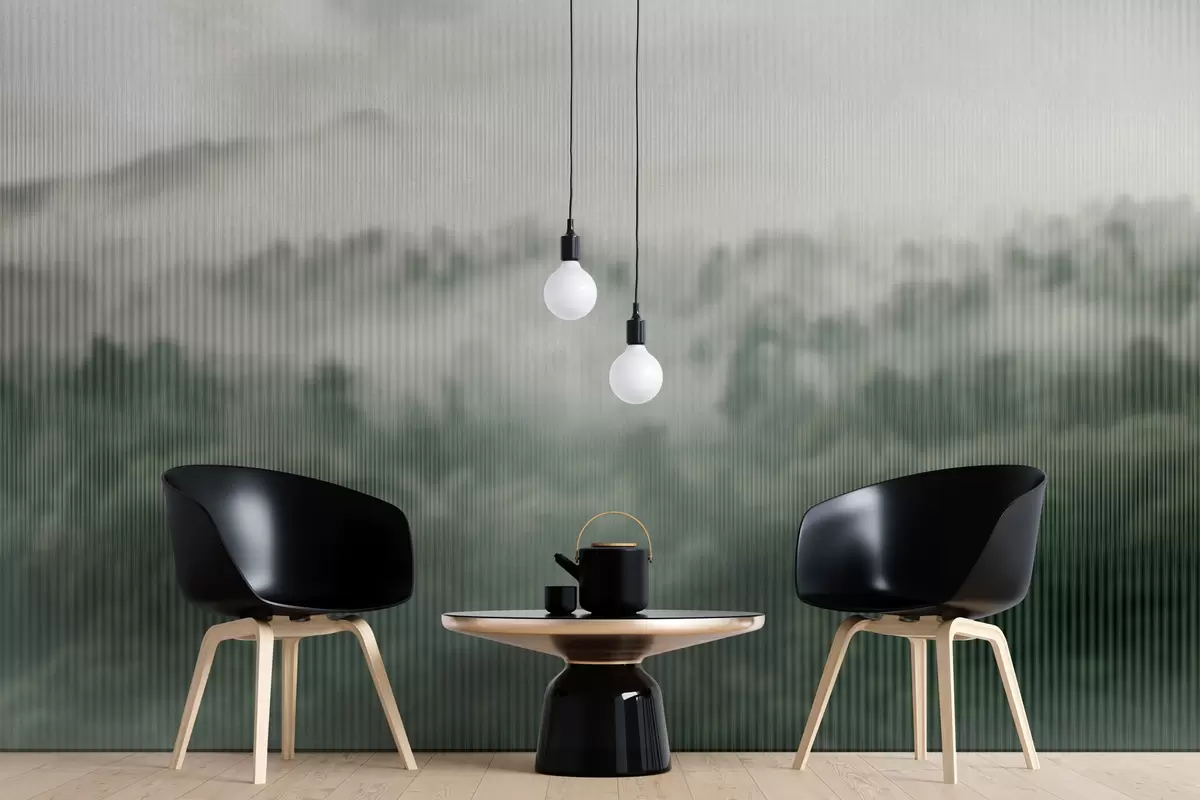 Stenske poslikave zeleni megleni gozd za steklom Št. w01678