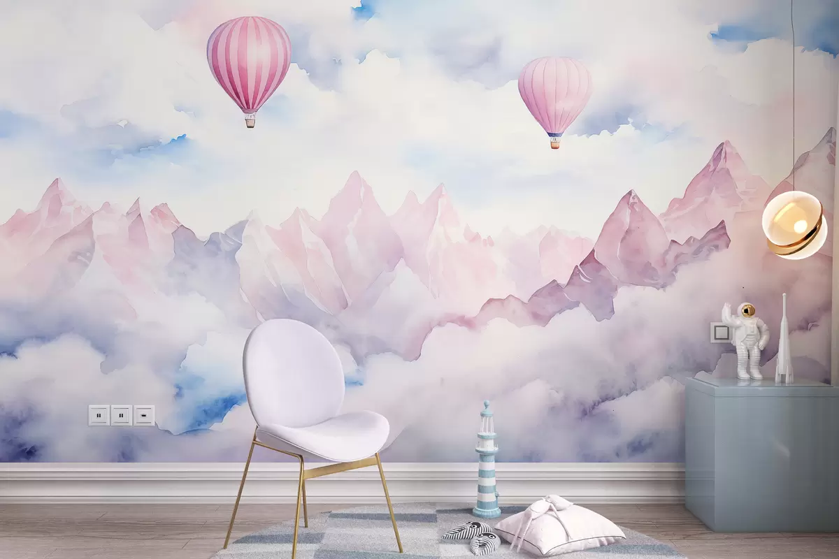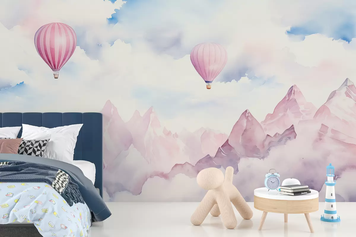 Stenske poslikave Čudovita gorska pokrajina z zračnimi baloni, akvarel Št. w01792