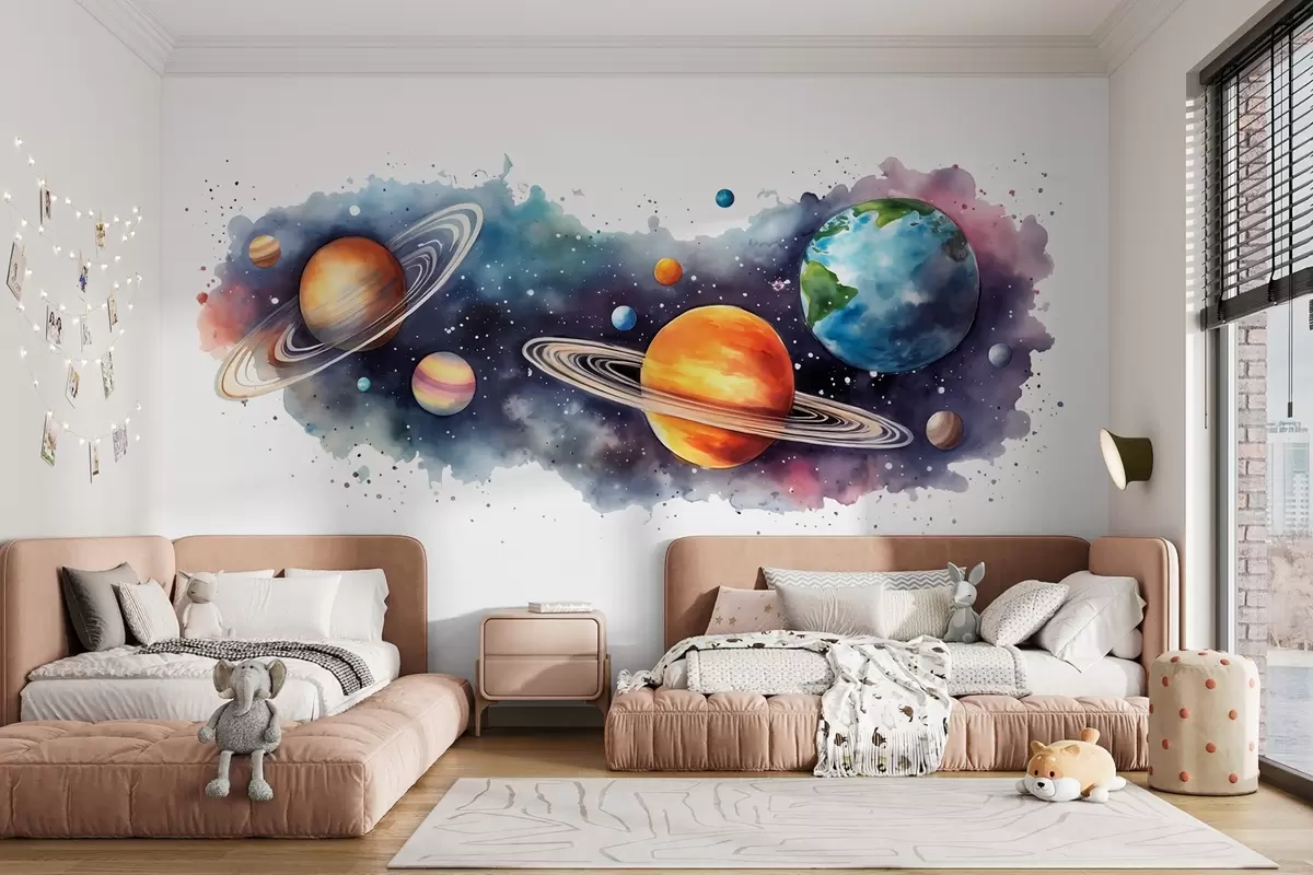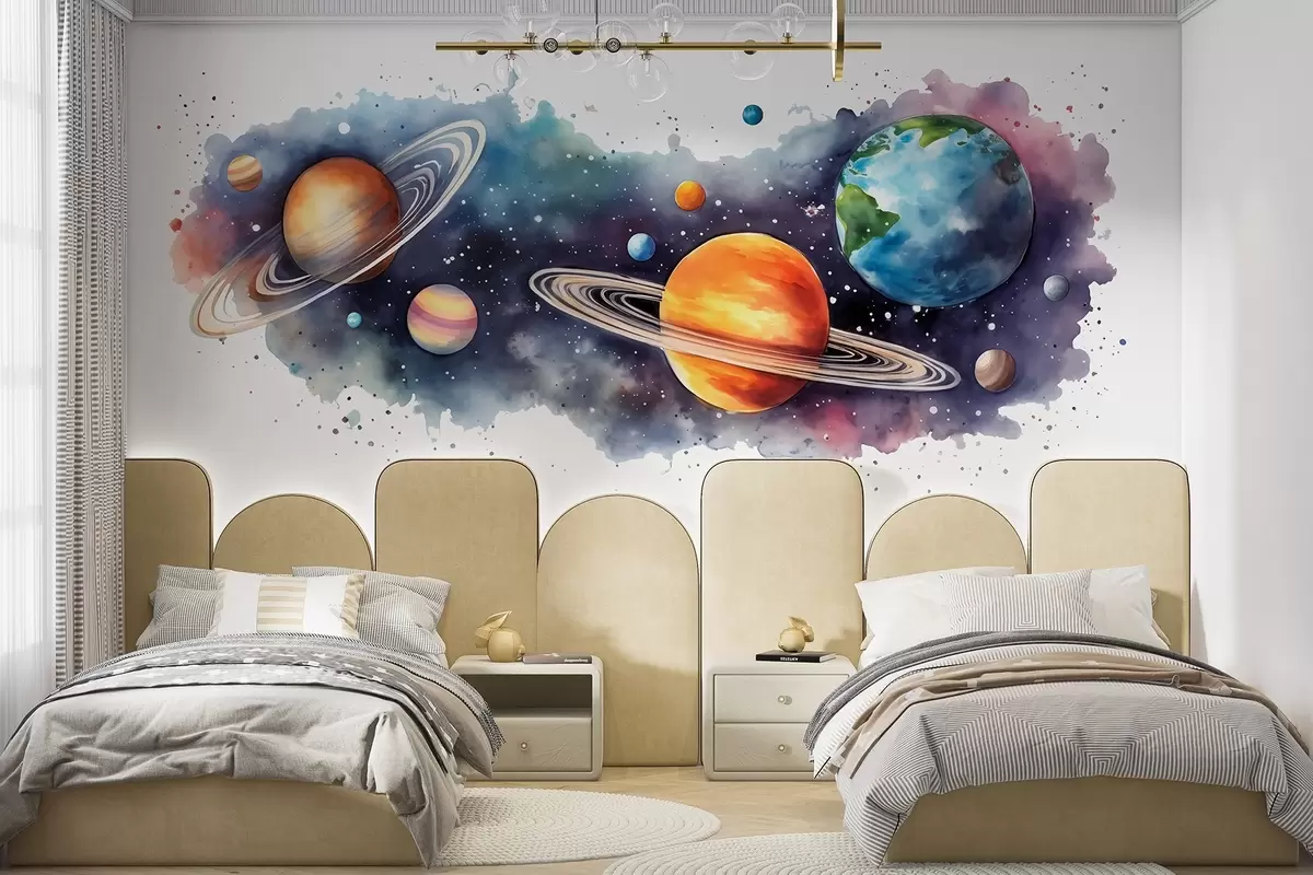 Stenske poslikave Akvarelni planeti, vesolje, vesoljski, Zemlja, Saturn Št. w01802