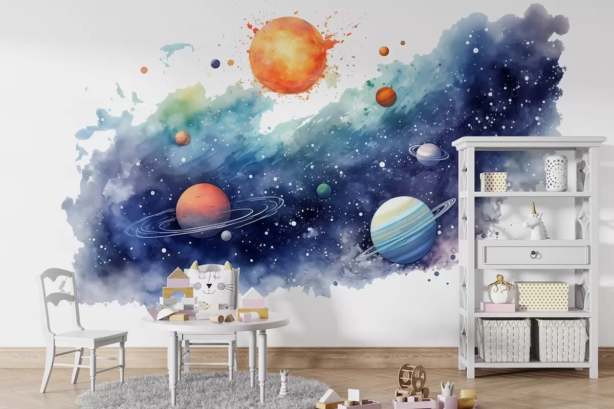 Stenske poslikave Akvarelni prostor, planeti, sonce, zvezde Št. w01803