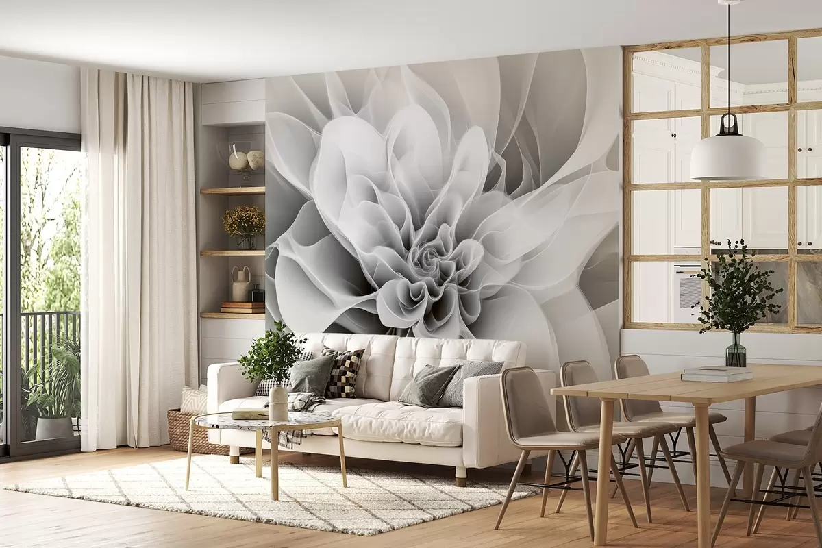 Stenske poslikave Elegantna abstraktna podoba rože z gladkimi črtami v sivi barvi Št. w01853v1