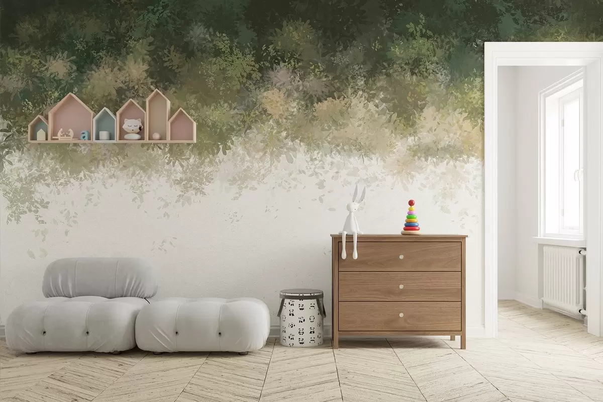 Stenske poslikave Lepi zeleni listi, cvetlični ornament, akvarel, narava Št. w01879