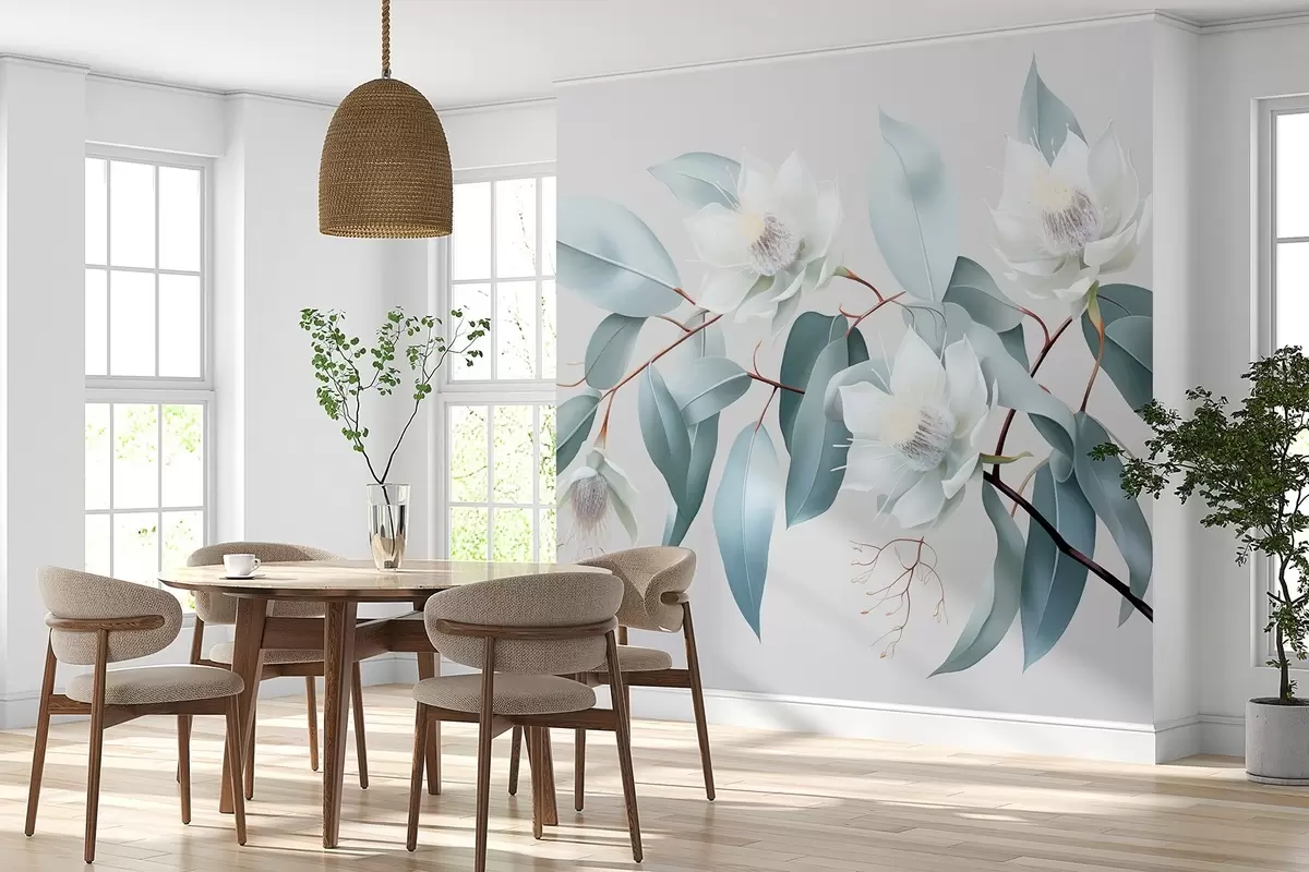 Stenske poslikave Cvetovi jasmina na veji, akril, mehke sive barve Št. w01885