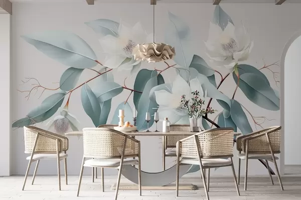 Stenske poslikave Cvetovi jasmina na veji, akril, mehke sive barve Št. w01885