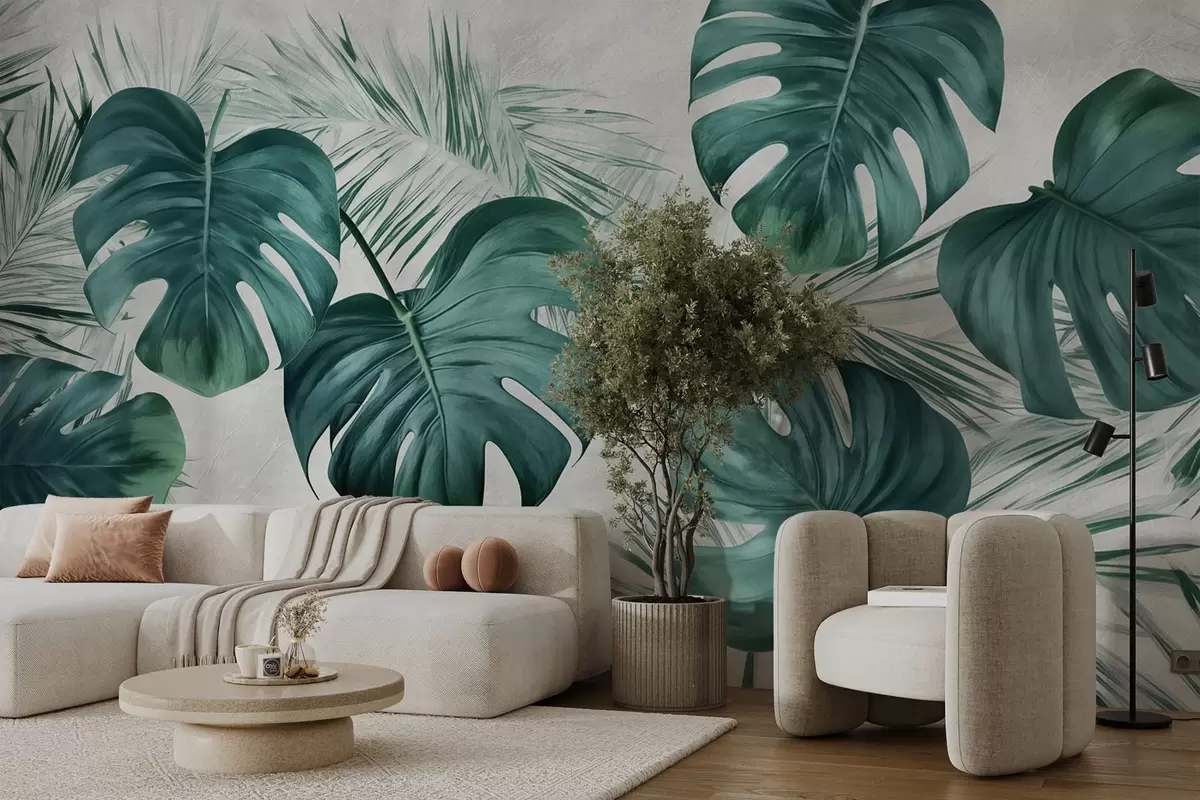 Stenske poslikave Veliki listi monstere in tropski listi Št. w01891