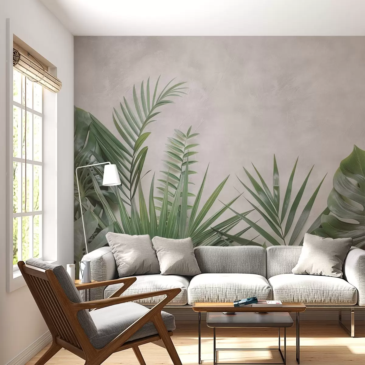 Stenske poslikave Tropsko grmičevje na svetlem betonskem ozadju Št. w01898