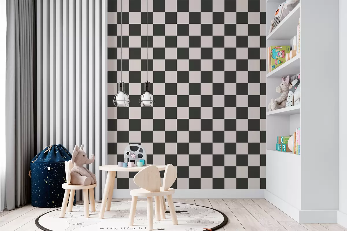 Stenske poslikave Geometrijska tapeta v črni in beli barvi Št. w01922