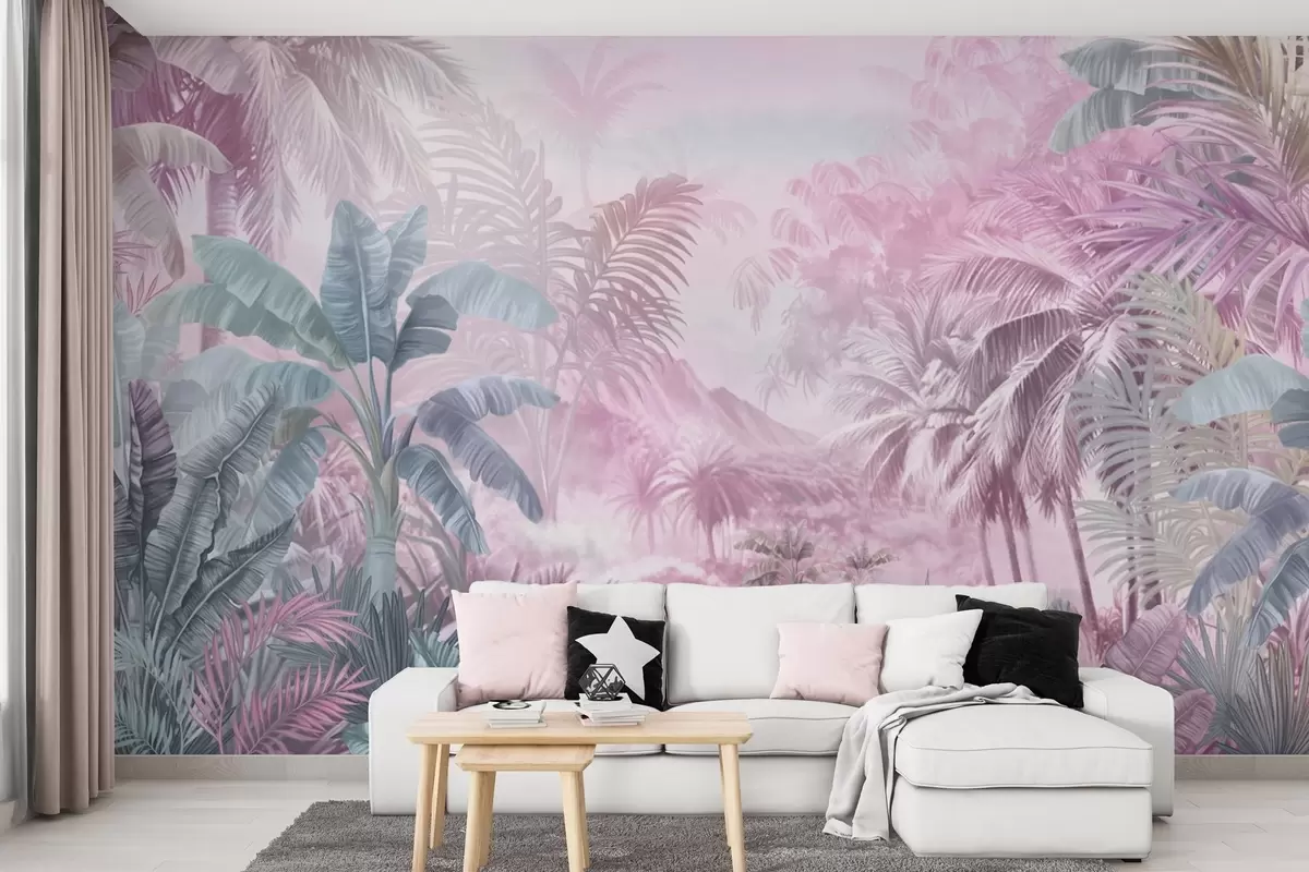 Stenske poslikave Deževni gozd v nežnih rožnatih tonih Št. w01931v3