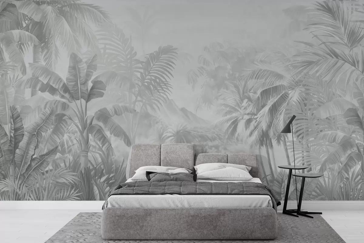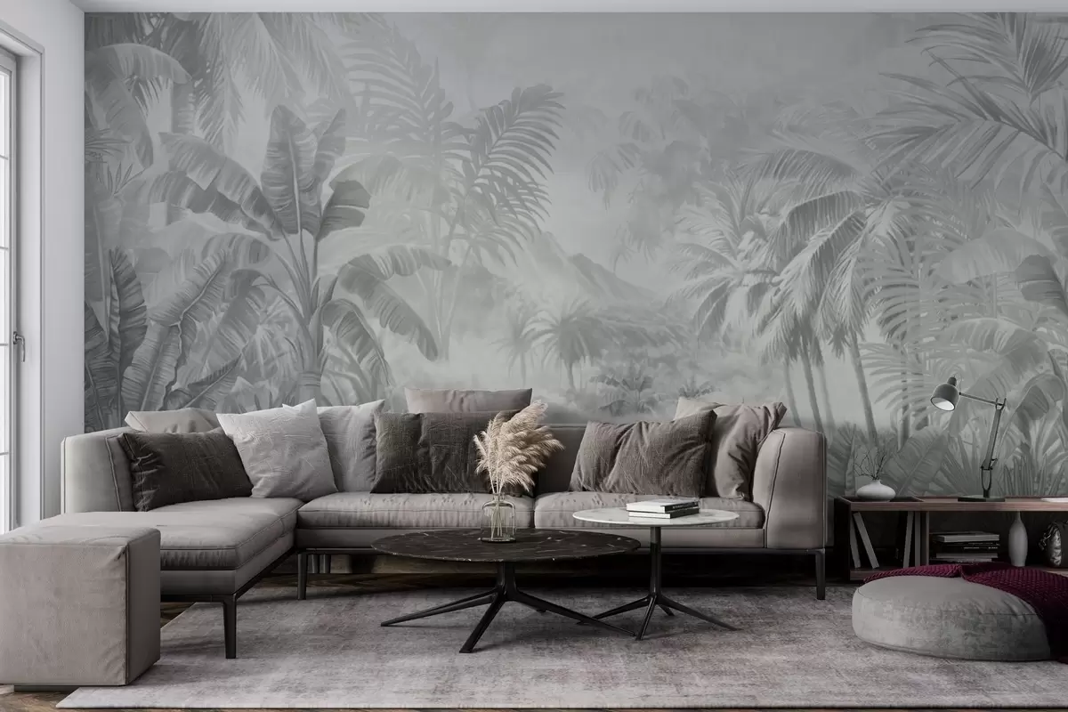 Stenske poslikave Deževni gozd v mehkih sivih tonih Št. w01931v4