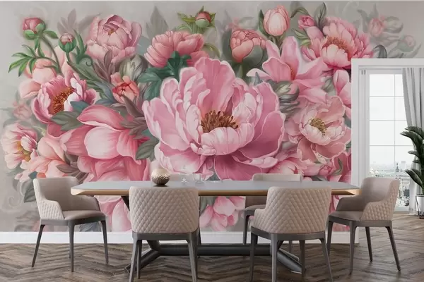 Stenske poslikave Veliki rožnati cvetovi Št. w01966