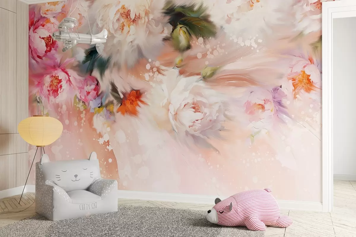Stenske poslikave Akrilne pivonje, poteze čopiča, cvetlične, mehke pastelne barve Št. w02021