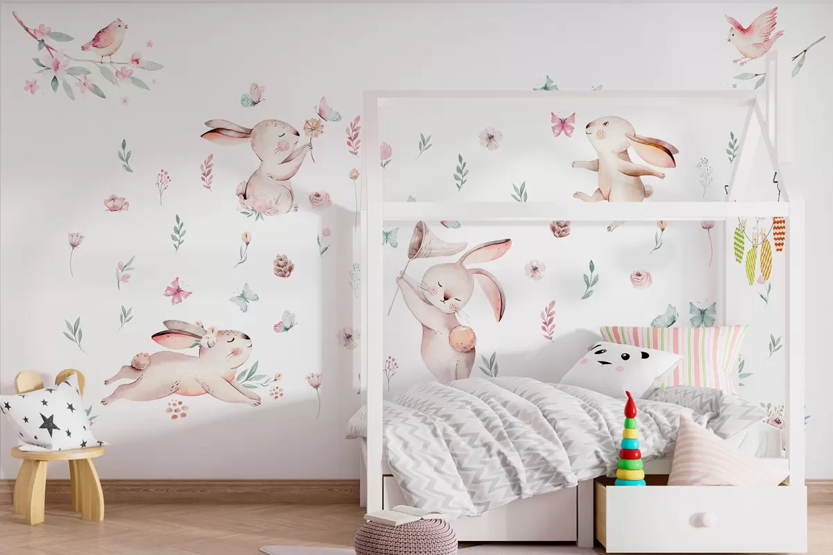 Stenske poslikave Pravljični zajčki v cvetju Št. w02025