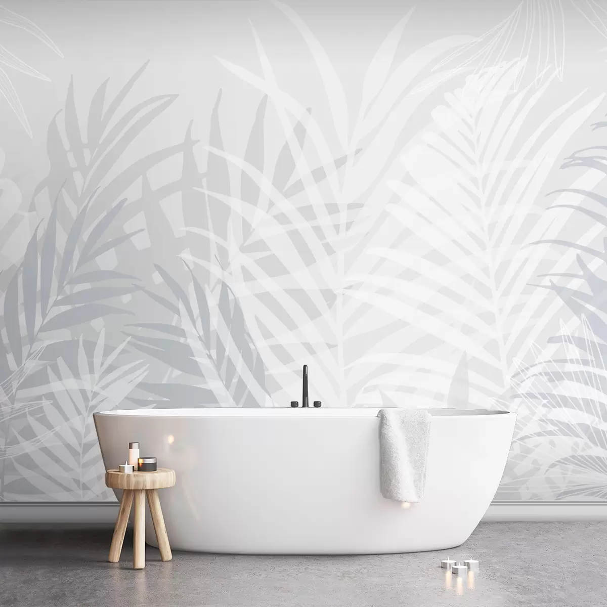 Stenske poslikave Trendovski tropski listi svetlo modre barve Št. w02026v3