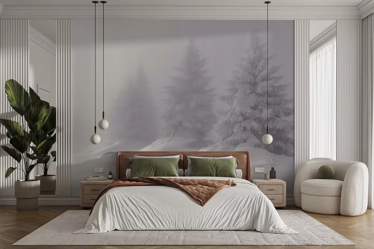 Stenske poslikave Zasnežene jelke v samoti meglenega jutra Št. w02065
