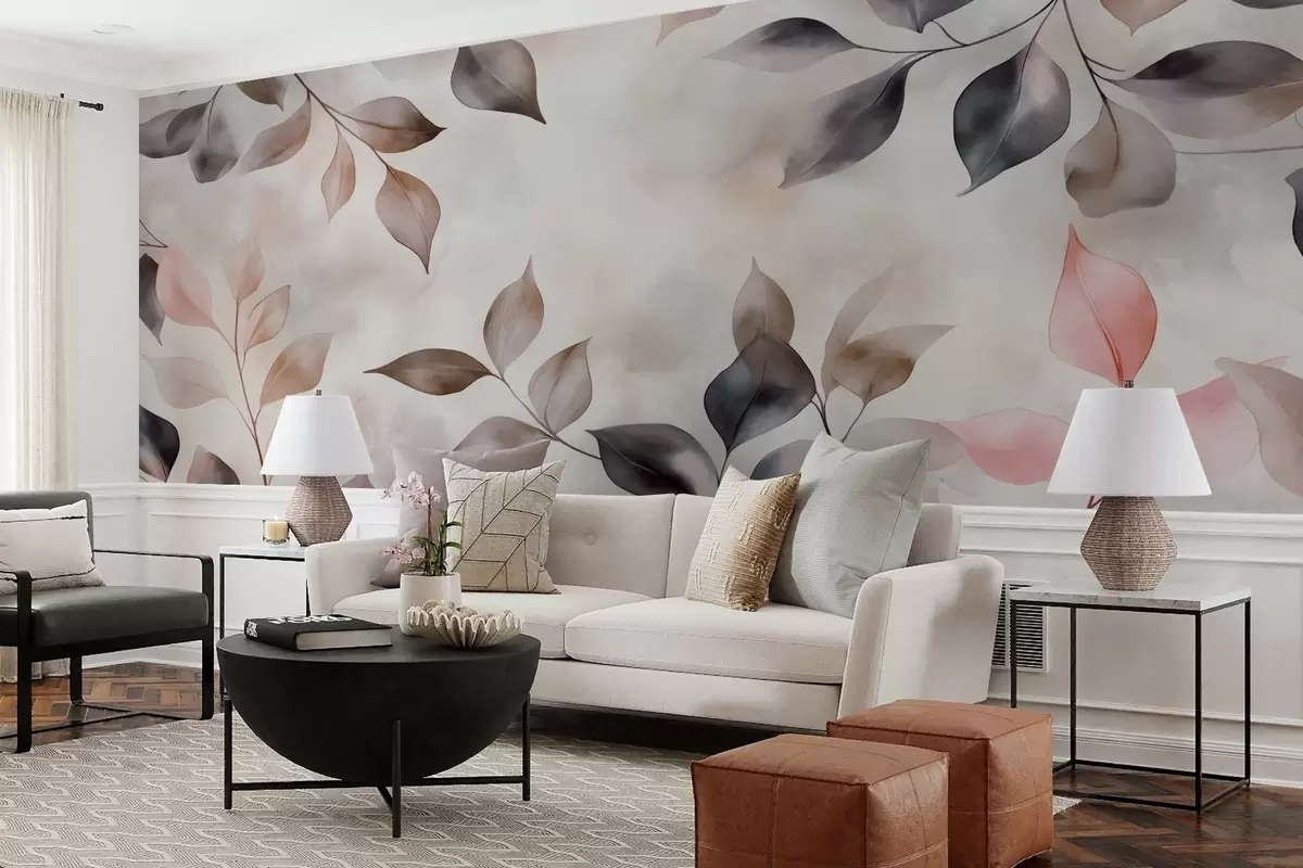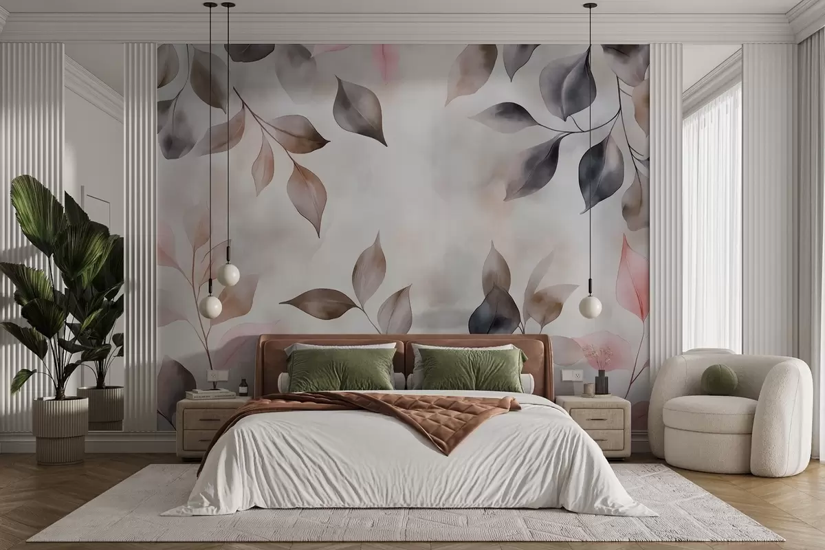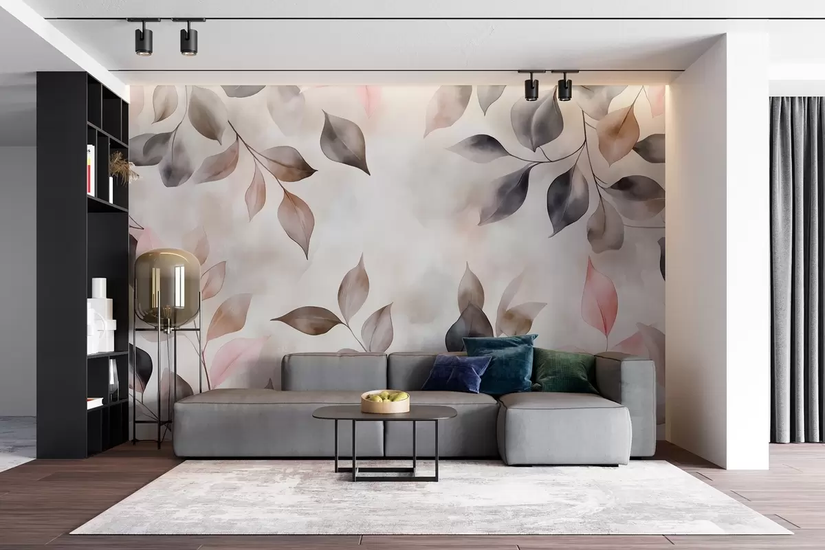 Stenske poslikave Nežno akvarelno listje Št. w02069v1