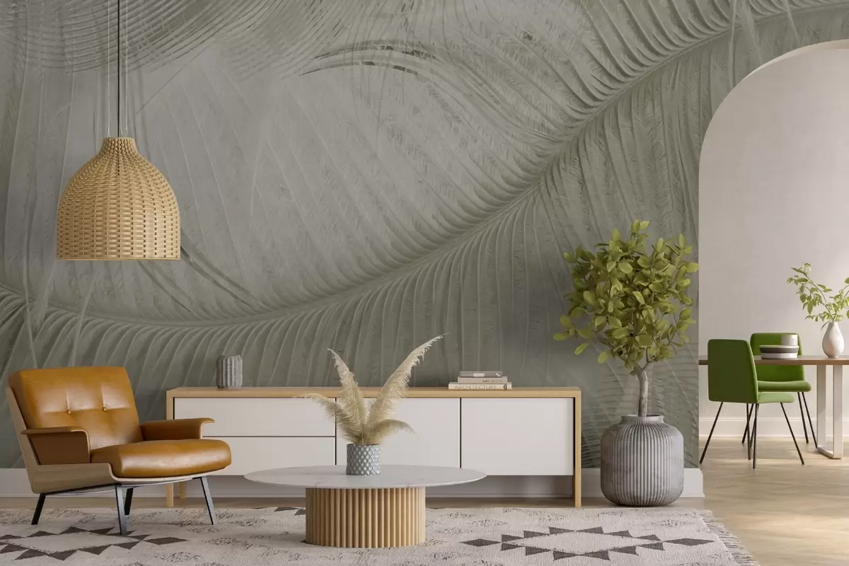 Stenske poslikave Lahka tekstura perja v zelenih odtenkih Št. w02072v2