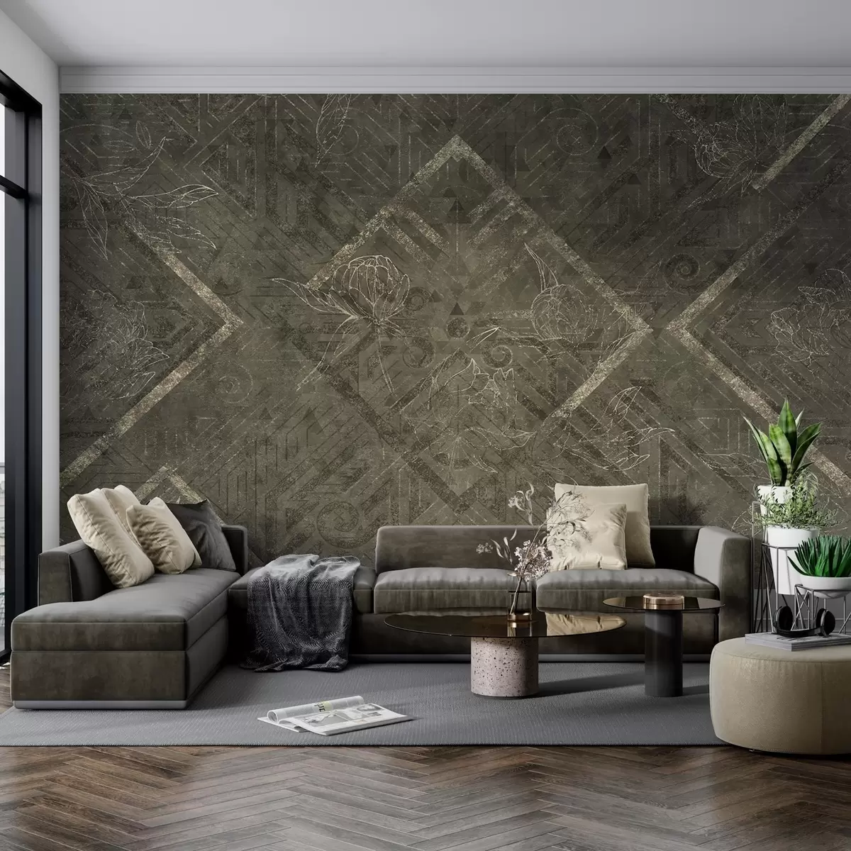 Stenske poslikave Grunge tekstura s cvetličnimi vzorci v rumeni barvi Št. w02079