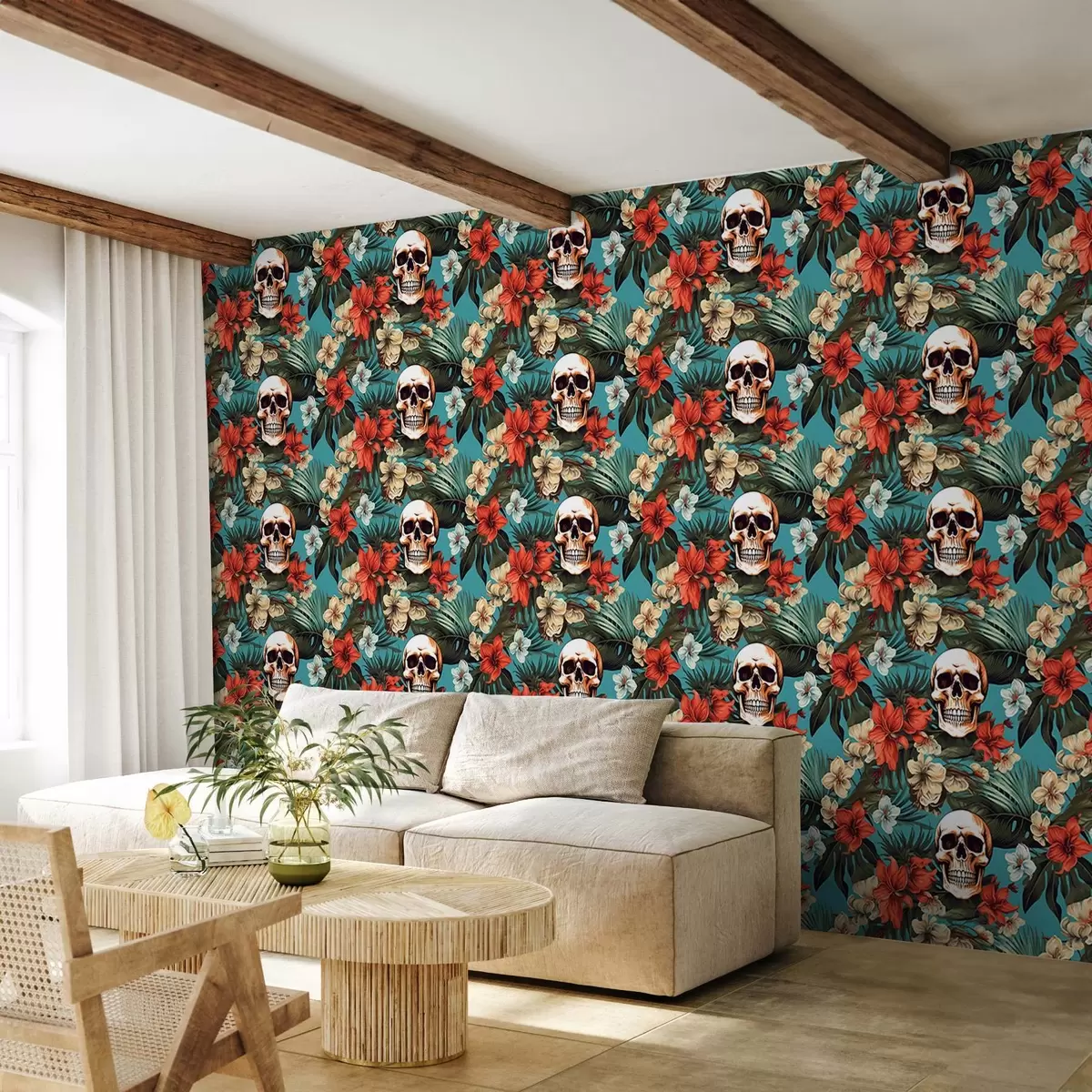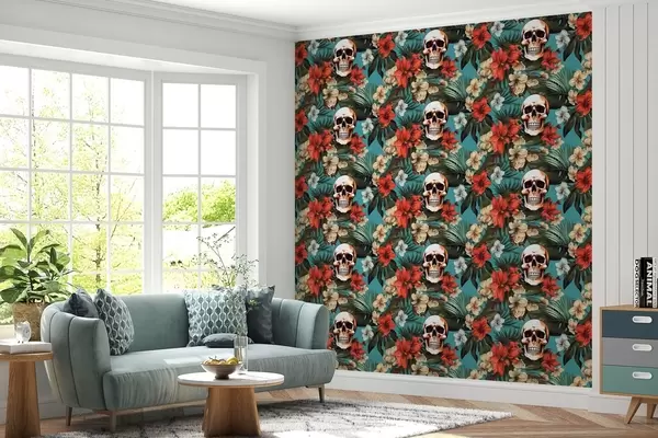Stenske poslikave Vzorec v tropskih preprogah s cvetjem in lobanjami Št. w02122