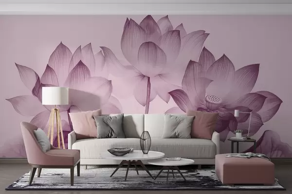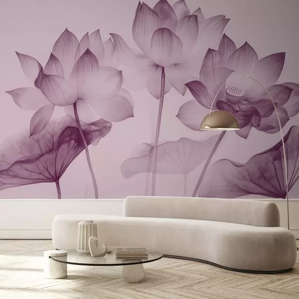 Stenske poslikave Trije lotosi z listi v slogu kitajskega slikarstva v vijolični barvi Št. w02146v1
