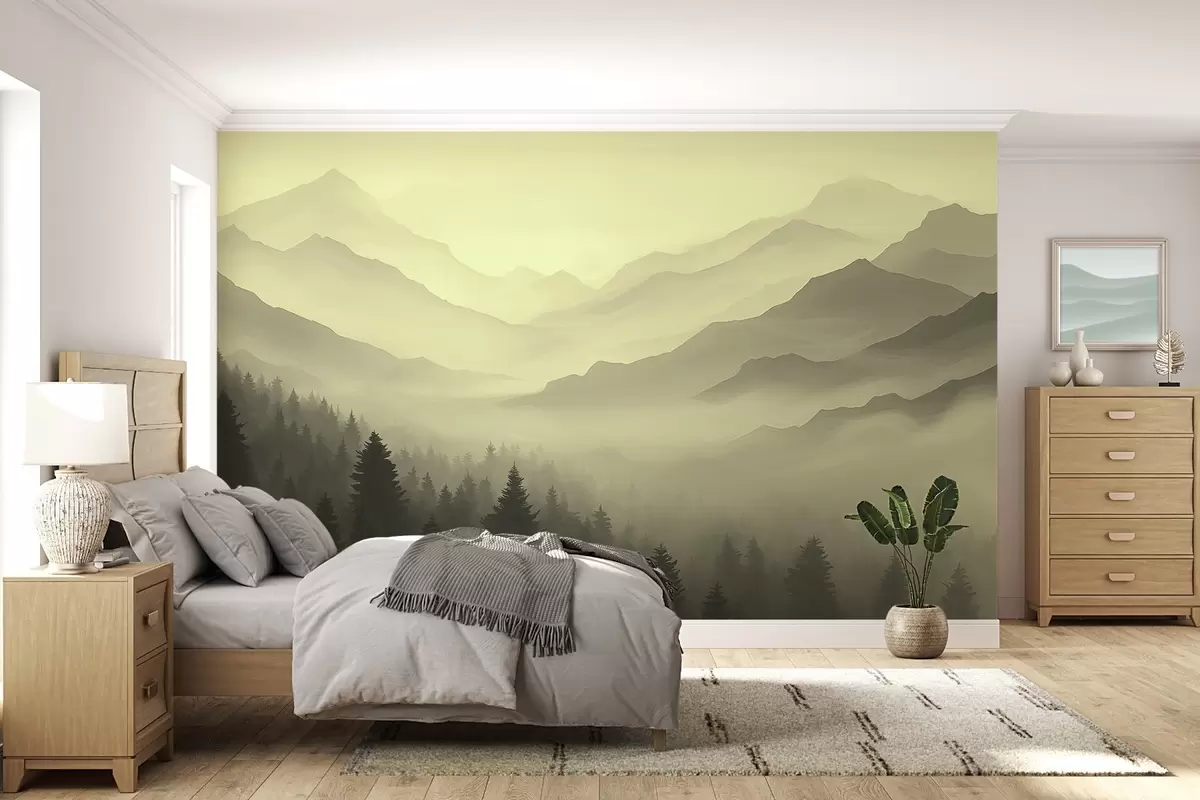 Stenske poslikave Gozd in gore v zelenih odtenkih Št. w02186v1