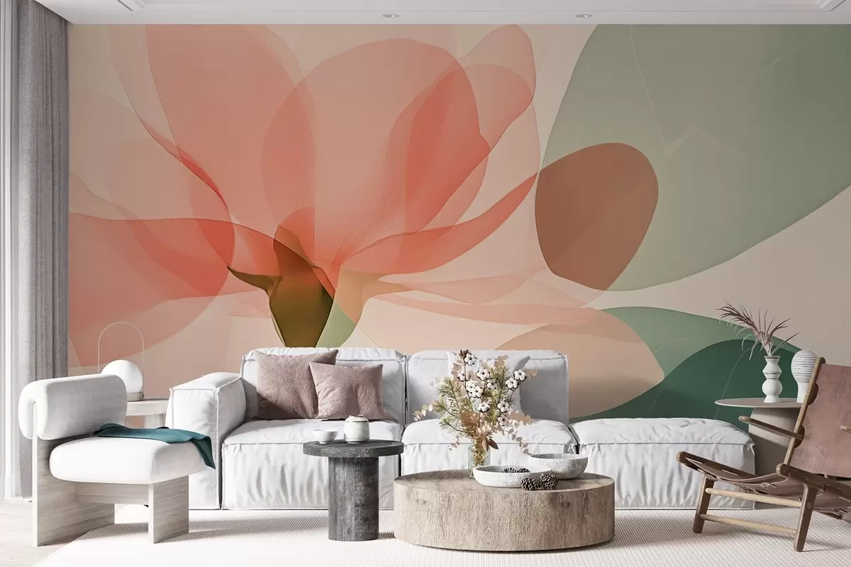 Stenske poslikave Nežno rožnate gardenije in zeleni toni prozornih listov Št. w02194