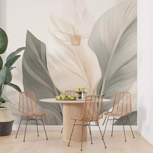 Stenske poslikave Bež in sivi listi na svetlem ozadju Št. w02217