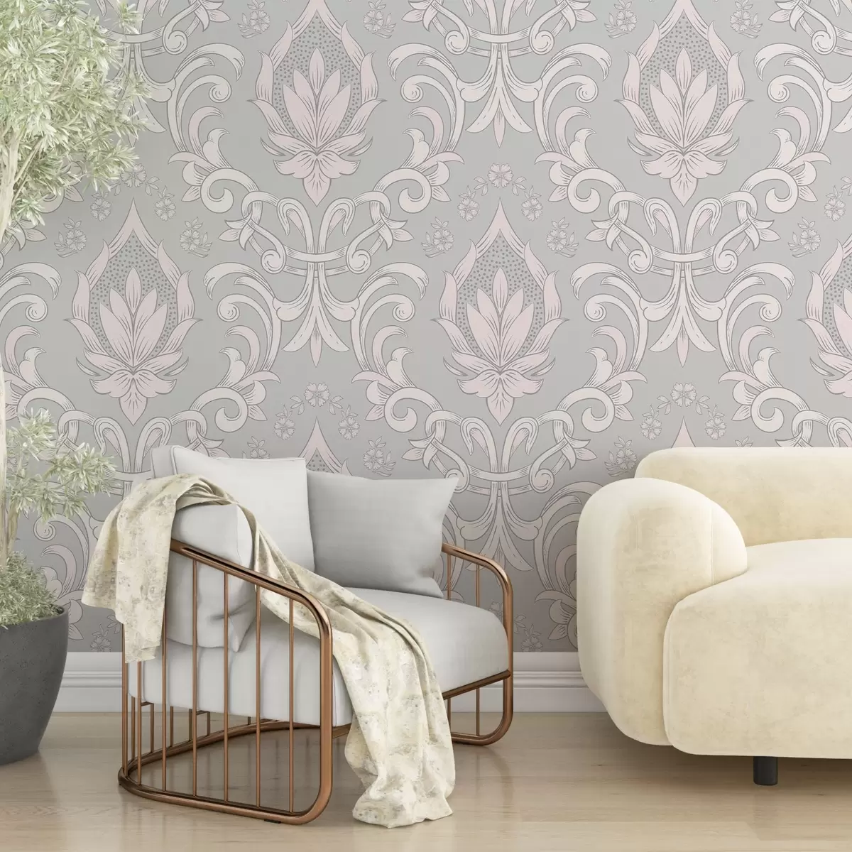 Stenske poslikave Staromodni damaščanski okras, svetle barve Št. w02246v1