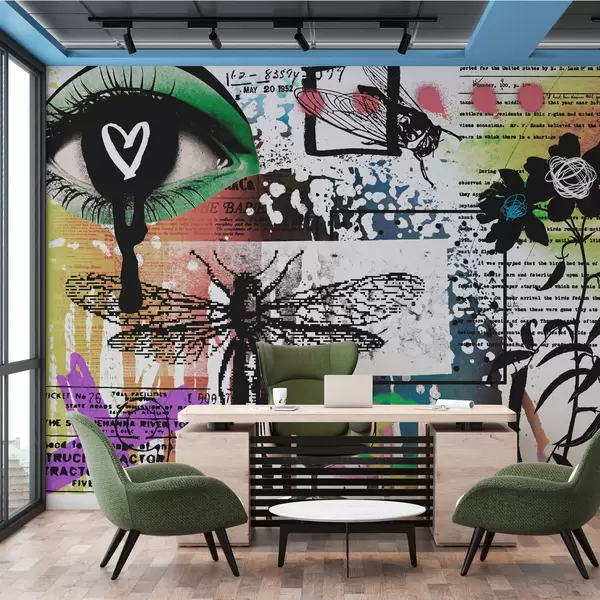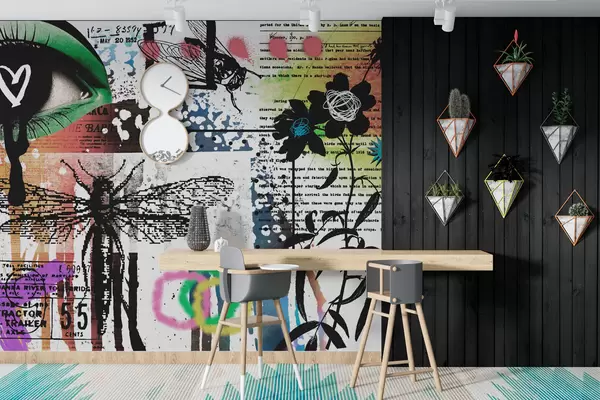 Stenske poslikave Napisi v slogu grafitov, cvetje, številke Št. w02255
