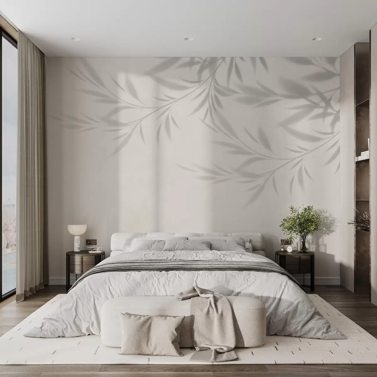Stenske poslikave Senca vej in listov na bež ozadju Št. w02283v1