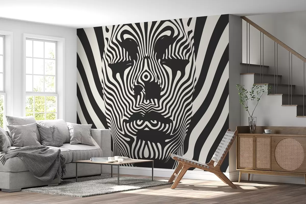 Stenske poslikave Mreža v slogu op art z abstraktnim obrazom, valovitimi črtami na svetlem ozadju. Št. w02285