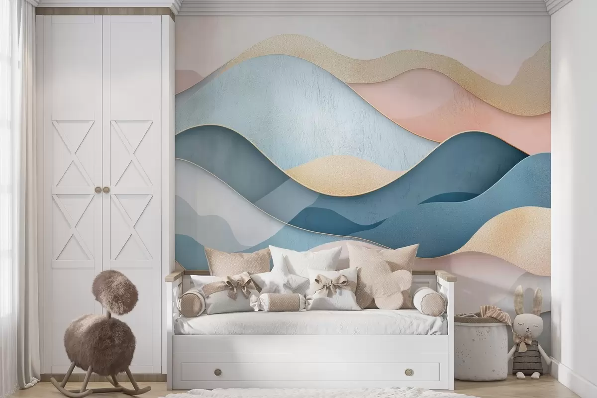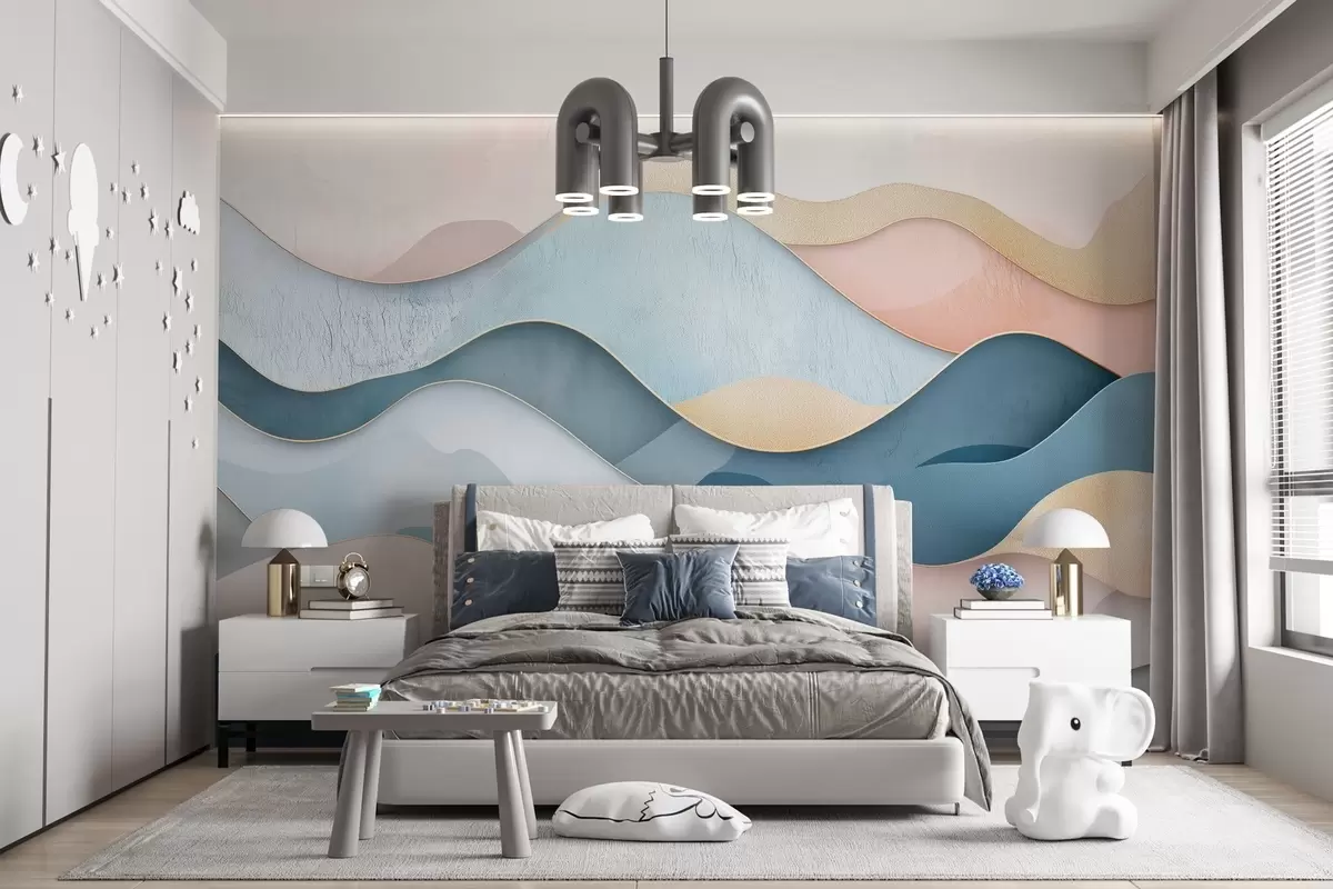 Stenske poslikave Valoviti vzorec Art Deco v roza in modri barvi Št. w02290