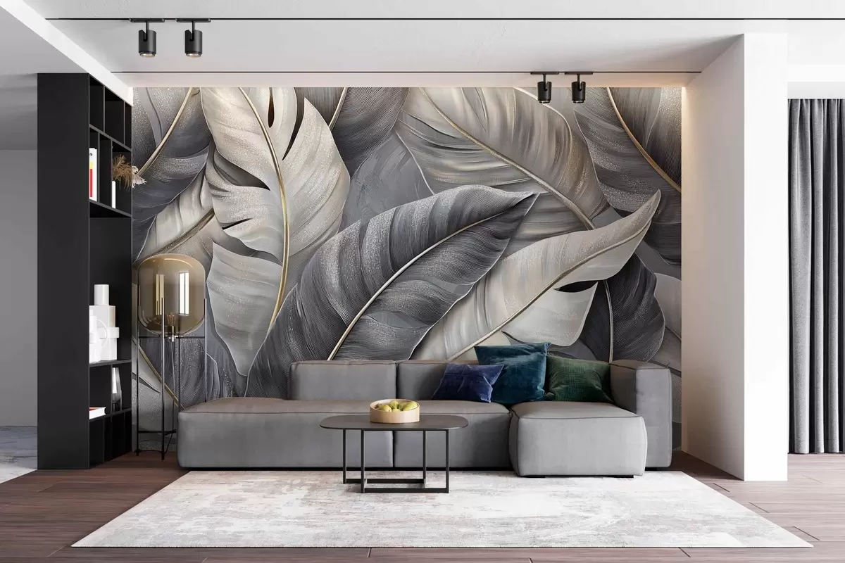Stenske poslikave razkošno ozadje z velikimi tropskimi listi Št. w02342
