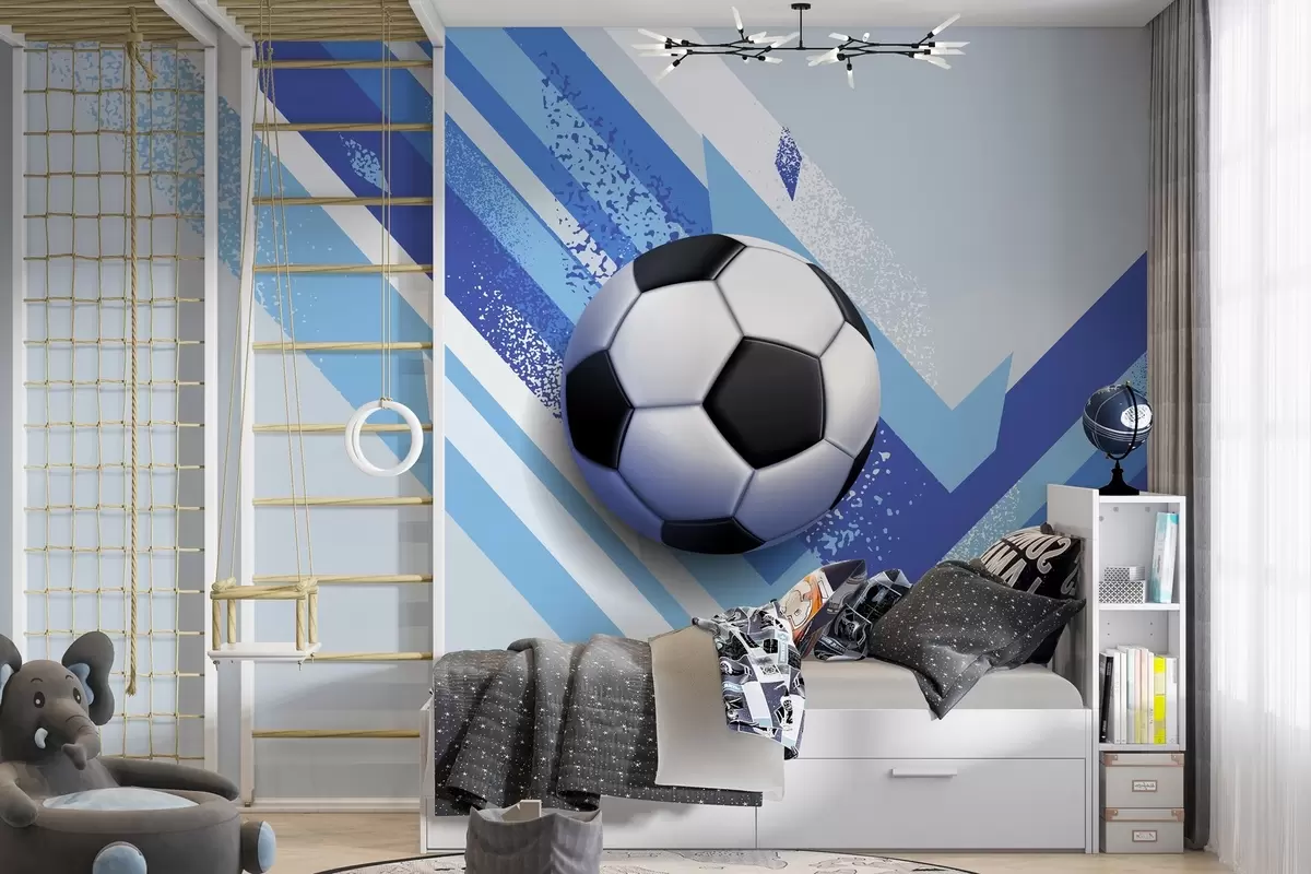 Stenske poslikave nogometna žoga na dinamičnem abstraktnem ozadju v modrih barvah Št. w02347