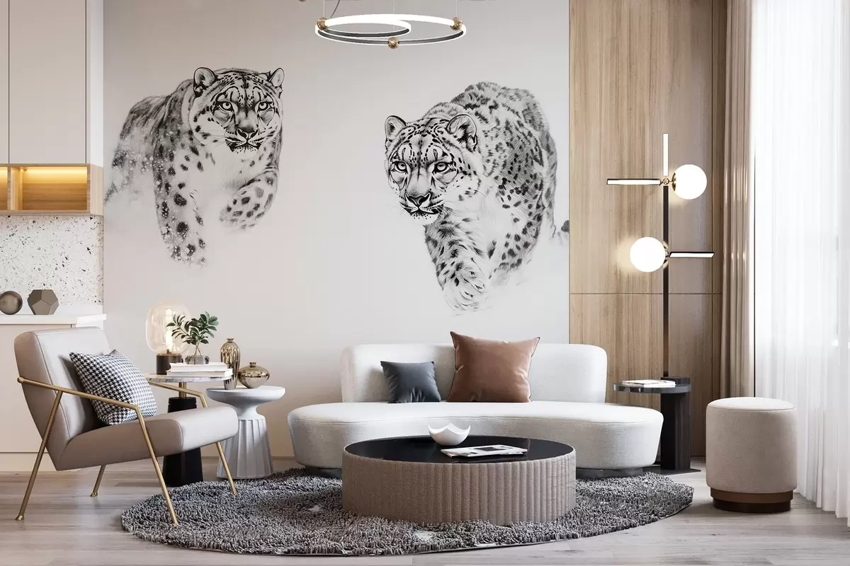Stenske poslikave Snežni leopardi, zima, divje živali, risanje s svinčnikom, minimalizem Št. w02359
