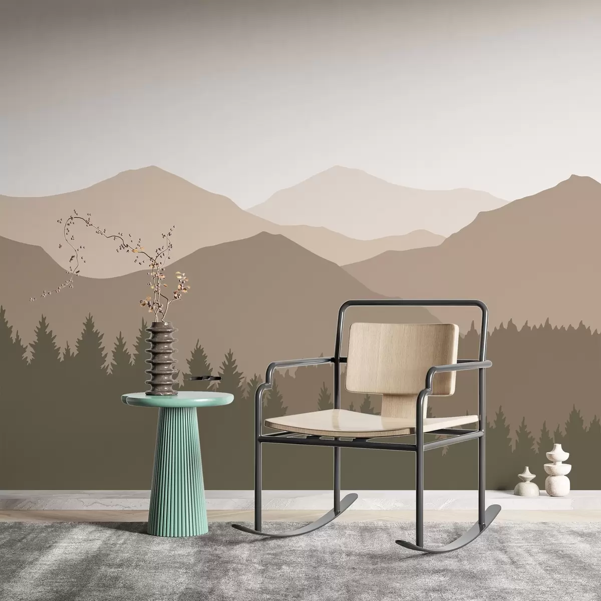 Stenske poslikave Silhuete gora v rjavih odtenkih Št. w02387v1